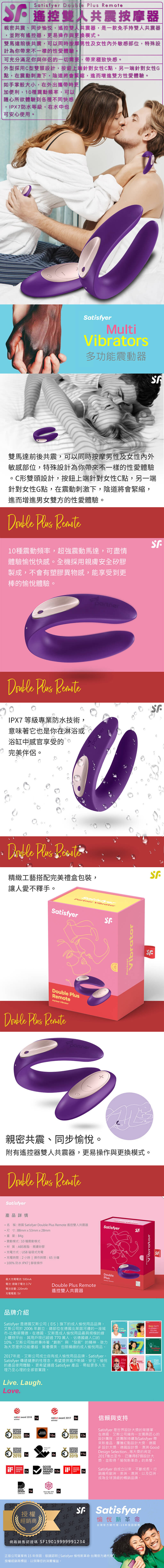德國Satisfyer Double Plus Remote 遙控雙人共震器,是一款免手持雙人共震器,並附有遙控器,更易操作與更換模式。