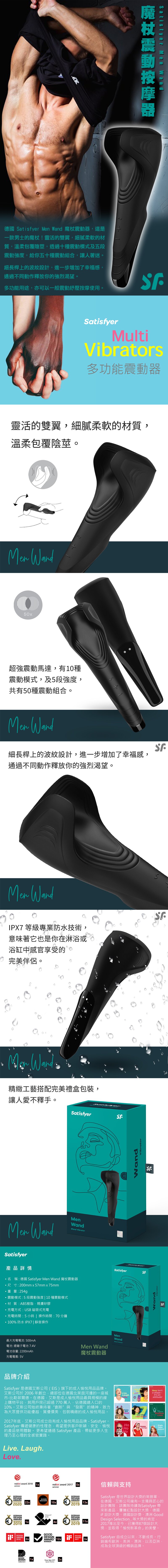 德國Satisfyer Men Wand 魔杖震動器,這是一款男士的魔杖!靈活的雙翼,細膩柔軟的材質,溫柔包覆陰莖,透過10種震動模式及5段震動強度,給你50種震動組合,讓人著迷。細長桿上的波紋設計,進一步增加了幸福感,通過不同動作釋放你的強烈渴望。