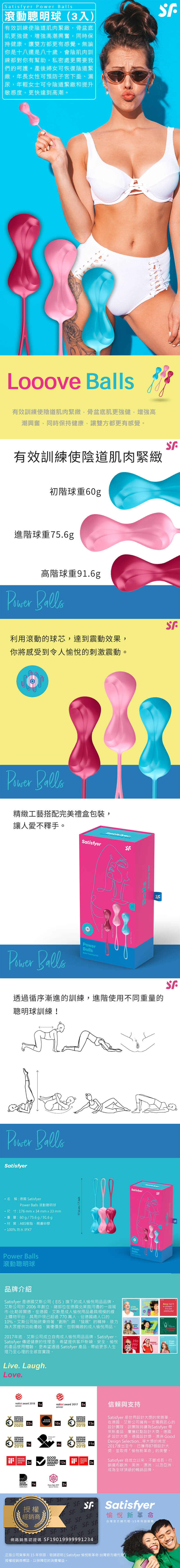 德國Satisfyer Power Balls 滾動聰明球 (3入) ,有效訓練使陰道肌肉緊緻,骨盆底肌更強健,增強高潮興奮,同時保持健康,讓雙方都更有感覺。